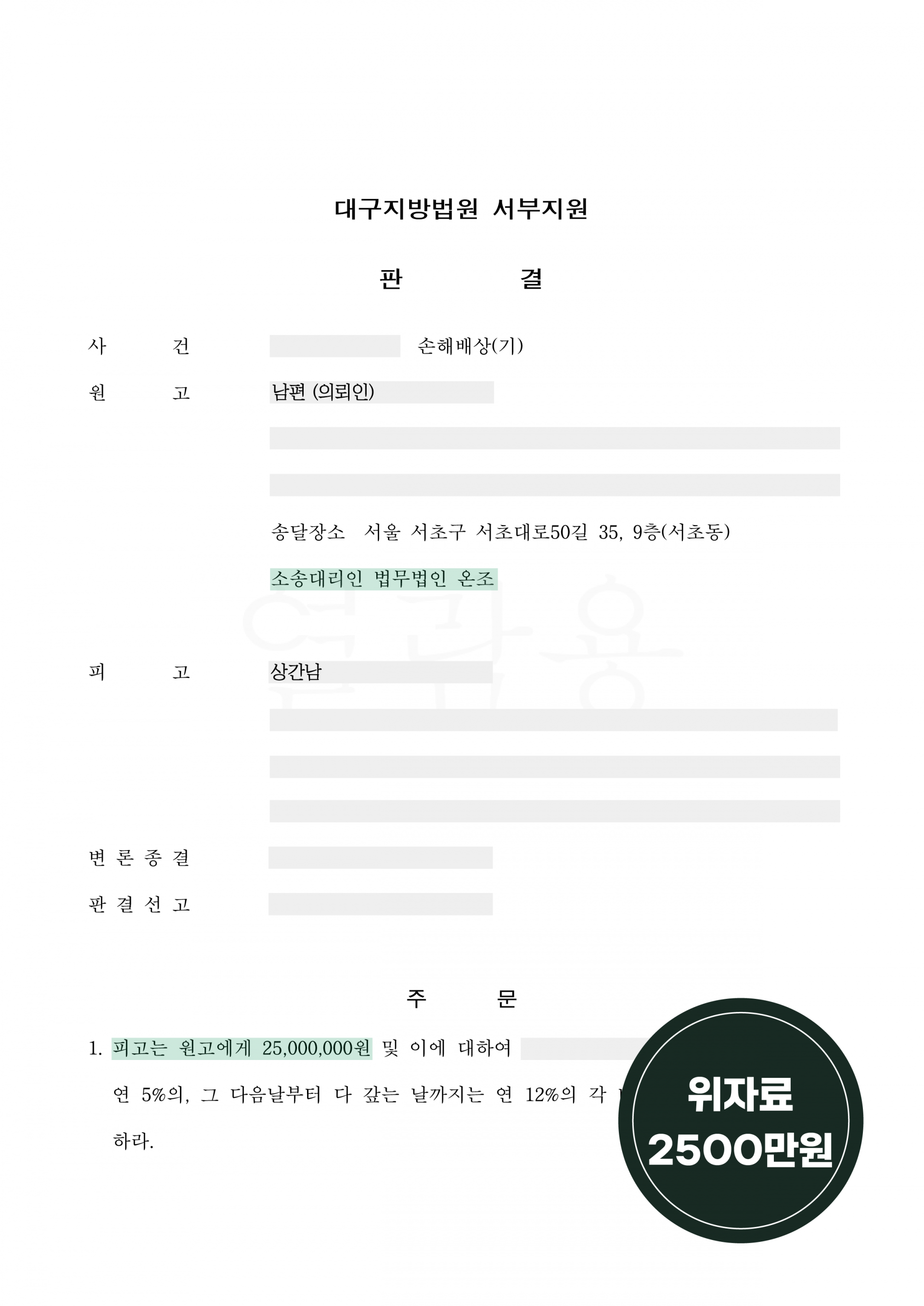 [대구지방법원] 상간남소송 2차 원고 대리하여 위자료 2,500만 원 인정받은 사례